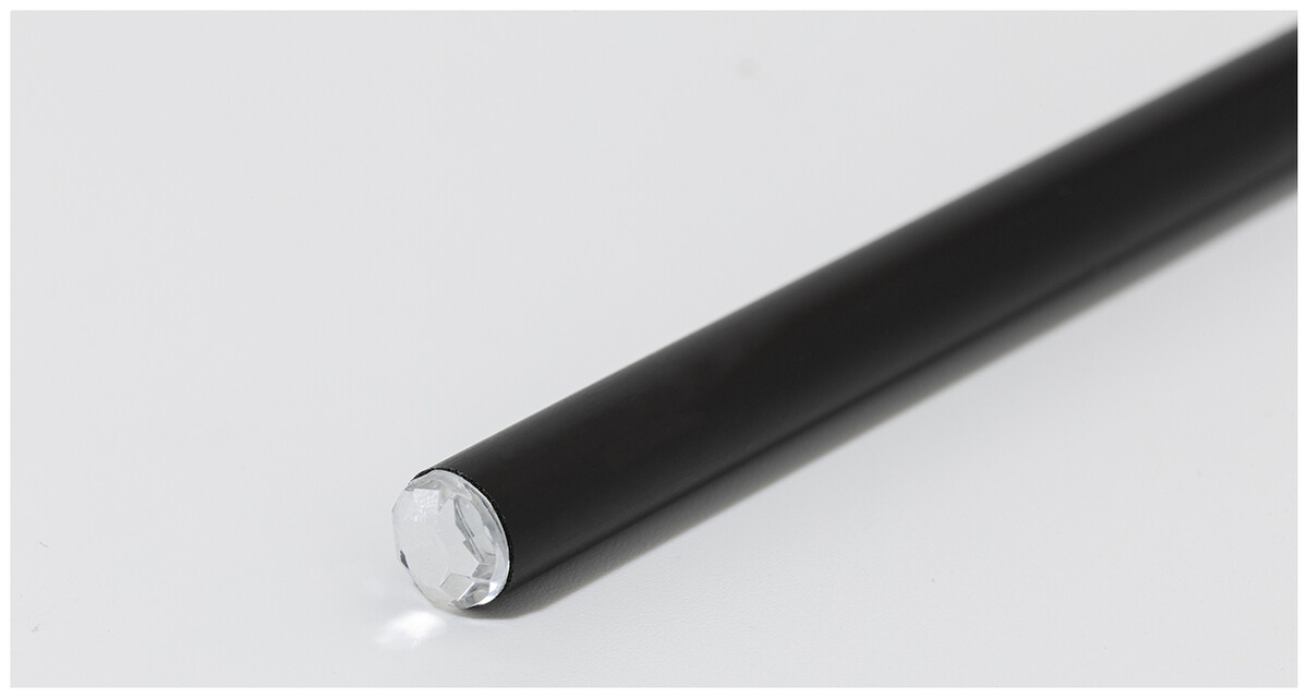 Černá dřevěná tužka s akrylovým ozdobnými kamínky. Ořezaná, třída HB.