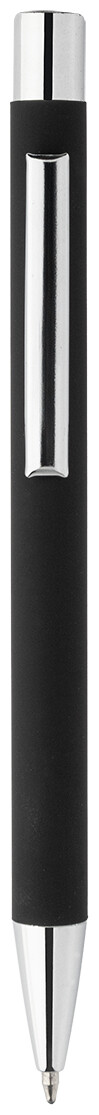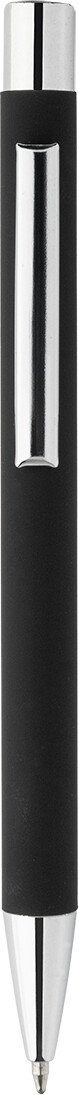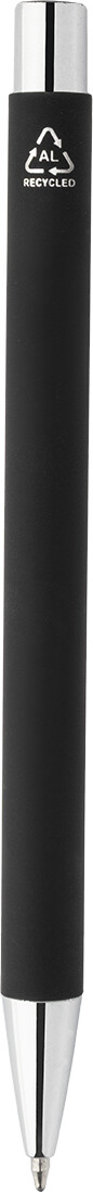 Kuličkové pero z recyklovaného hliníku s černým pogumovaným tělem a barevnými lesklými kovovými částmi. Se speciálním povrchem pro zrcadlové gravírování, které ladí s kovovými částmi. S modrou náplní.