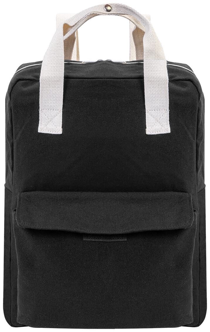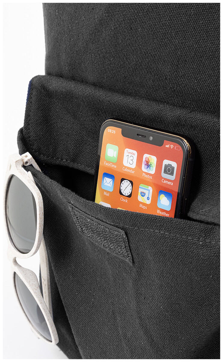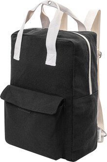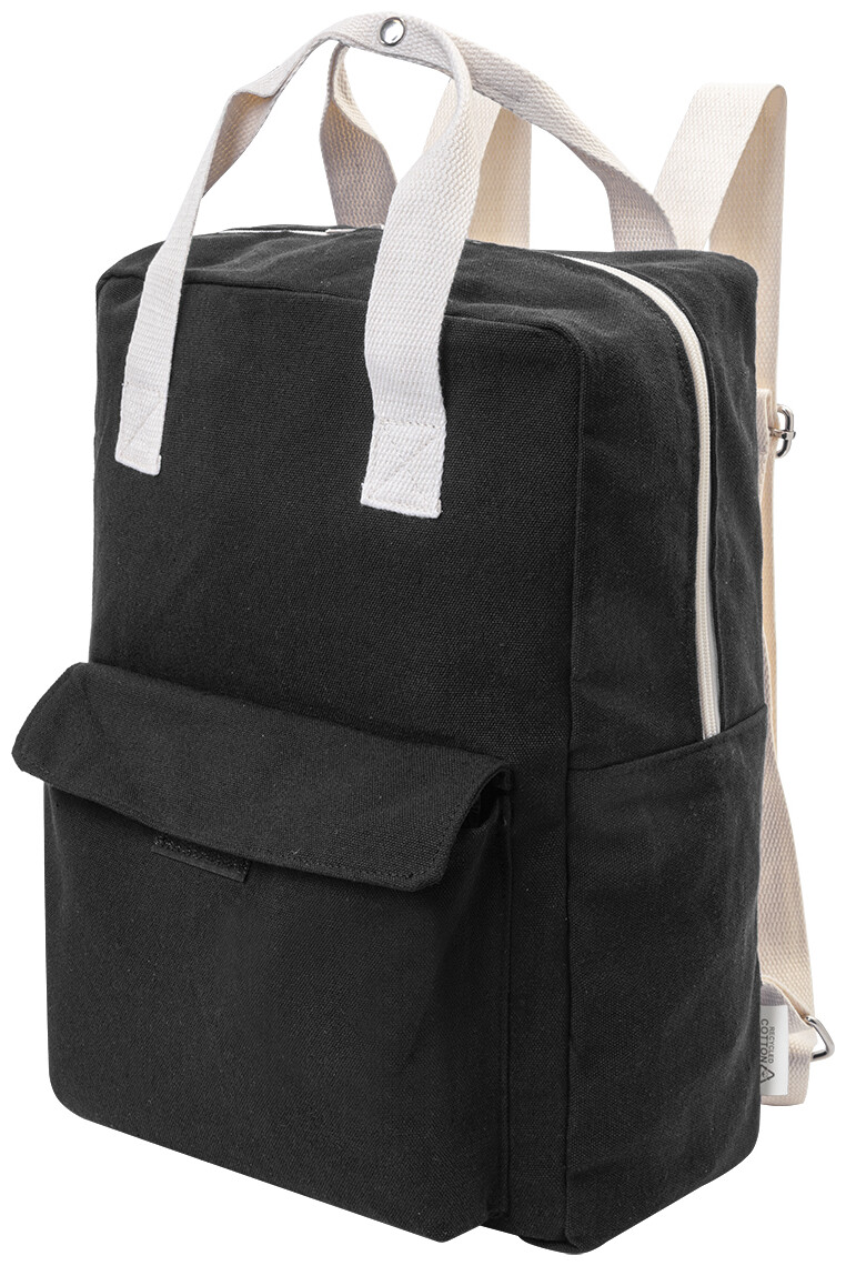 Batoh z recyklovaného plátna s hlavní přihrádkou na zip, polstrovanou přihrádkou na notebook (13") a přední kapsou na suchý zip. 70 % recyklované bavlny a 30 % RPET polyesteru. S výraznou etiketou o recyklované bavlně.