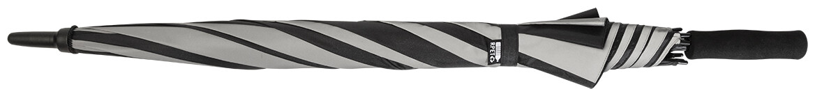Velký, manuální větruodolný deštník se 4 panely z 190T RPET pongee a 4 panely z reflexní tkaniny. S celolaminátovým rámem a tyčí, rukojetí z EVA. 190T RPET pongee. S charakteristickým RPET štítkem.