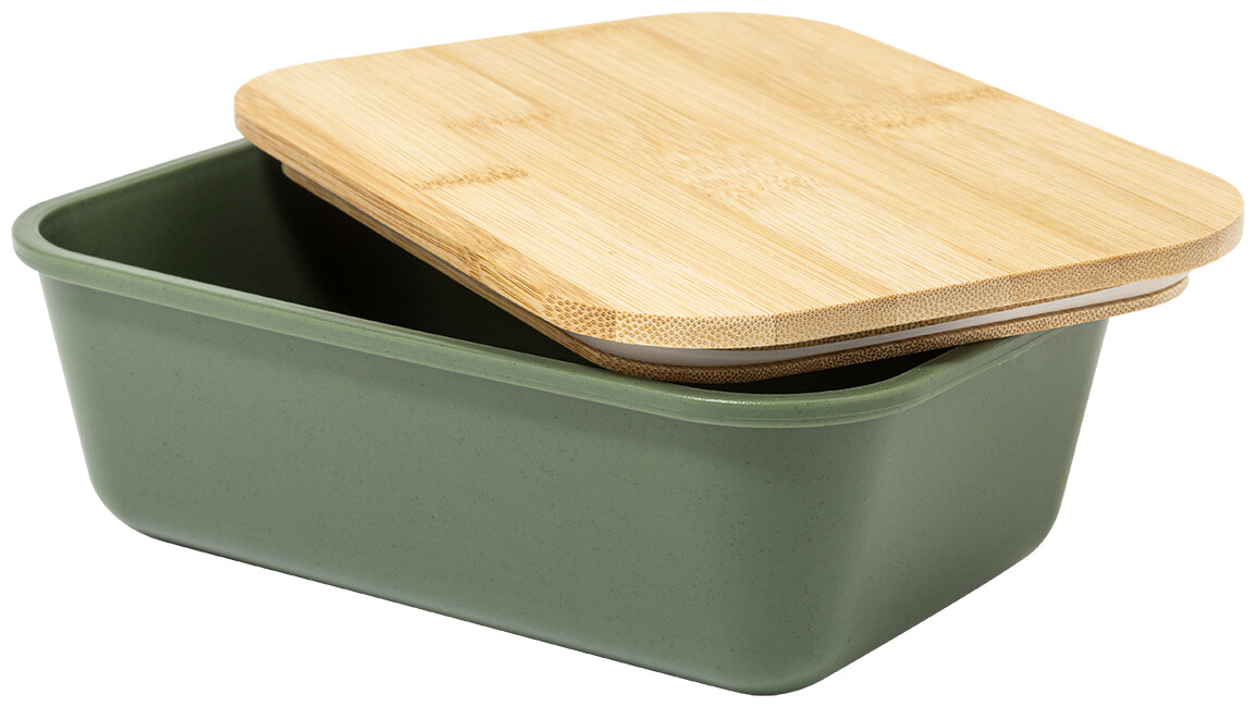 Box na jídlo z PP plastu s bambusovým víkem a elastickým páskem. 1000 ml.