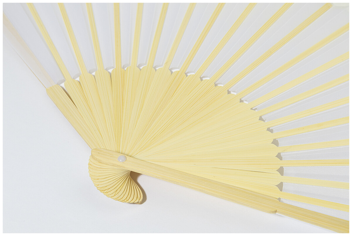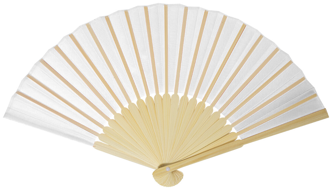 Vějíř z RPET polyesteru s bambusovými žebry.
