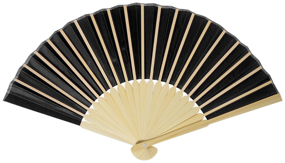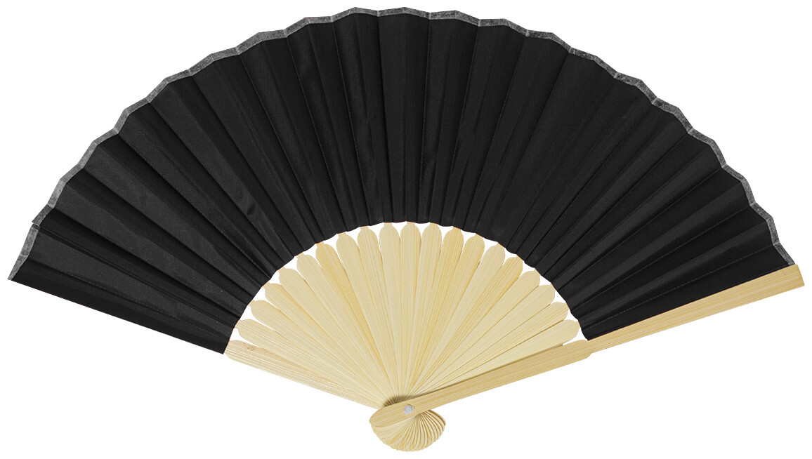 Vějíř z RPET polyesteru s bambusovými žebry.