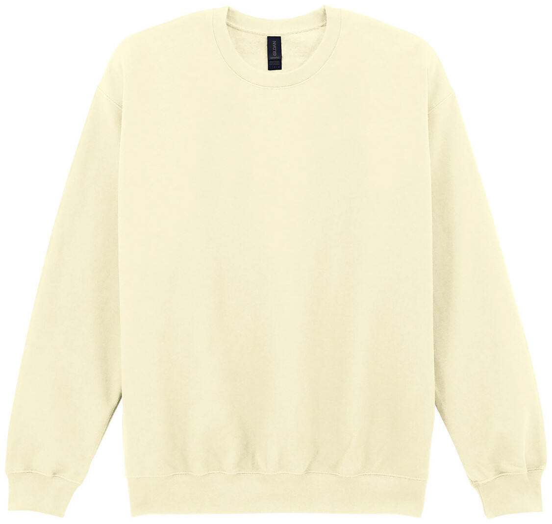 Mikina s kulatým výstřihem, 80% bavlna a 20% polyester. 285 g/m2 (bílá 278 g/m2). Značka Gildan.