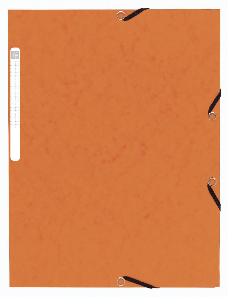 Desky - Exacompta A4, s gumičkou, oranžové jsou klasické tříklopové zakládací desky určené k evidenci a archivaci dokumentů. Dvě černé gumičky z delší strany zajišťují bezpečné uzavření a formát umožňuje založení dokumentů bez přesahu.