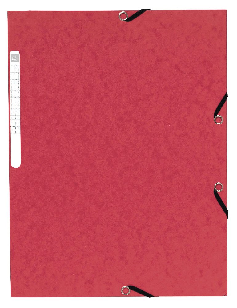 Desky - Exacompta A4, s gumičkou, červené jsou klasické tříklopové zakládací desky určené k evidenci a archivaci dokumentů. Dvě černé gumičky z delší strany zajišťují bezpečné uzavření a formát umožňuje založení dokumentů bez přesahu.