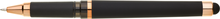 Gelová propiska s s víčkem a touch koncem, soft povrch a doplňky v růžovo-zlaté barvě. Náplň gelová velkokapacitní modře píšící.