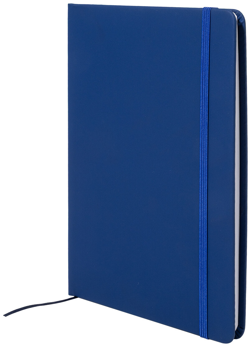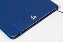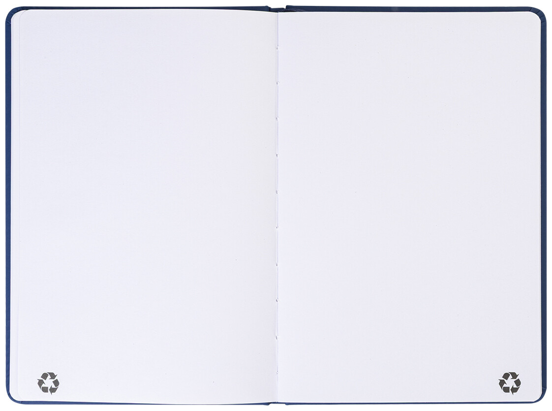 Blok A5 z recyklované PU kůže se 100 čistými listy z recyklovaného papíru. Se záložkou v odpovídající barvě a gumičkou.