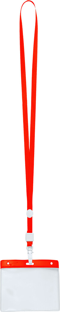Lanyard s plastovou karabinkou a PVC držákem, polyester.