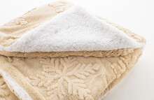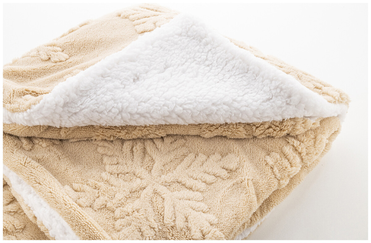 Luxusní dvouvrstvá vánoční deka z RPET s žakárovým vzorem sněhových vloček. S korálovým fleecovým materiálem RPET 260 g/m2 a oboustrannou podšívkou z RPET sherpa fleecu 210 g/m2. Zabaleno do stuhy a tisknutelného papírového kartonu.