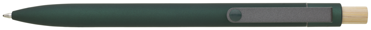 BRANIX SOFT RE designová kovová propiskas matným soft povrchem z recyklovaného hliníku. Propiska je doplněna tmavým kovovým klipem a bambusovým cvakátkem. Velkoobsahová náplň píše modře.