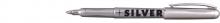 Značkovač se stříbrnou stopou písma. Ideální pro psaní, kreslení a dekorování na tmavých i světlých papírech. Inkoust je permanentní na papíře a porézních materiálech, částečně permanentní na skle, kovech a plastech. Šíře stopy cca 1,5 - 3 mm. Skladujte ve vodorovné poloze.