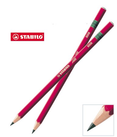 Tuha z nejjemnějšího grafitu ve dřevě s červeným lakem. Píše téměř na všechny povrchy, včetně skla, plastu a kovu.