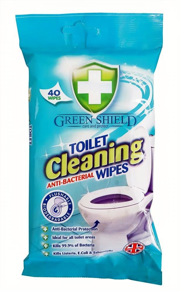 Vlhčené utěrky Green Shield, antibakteriální, na WC a smalt, 40 ks