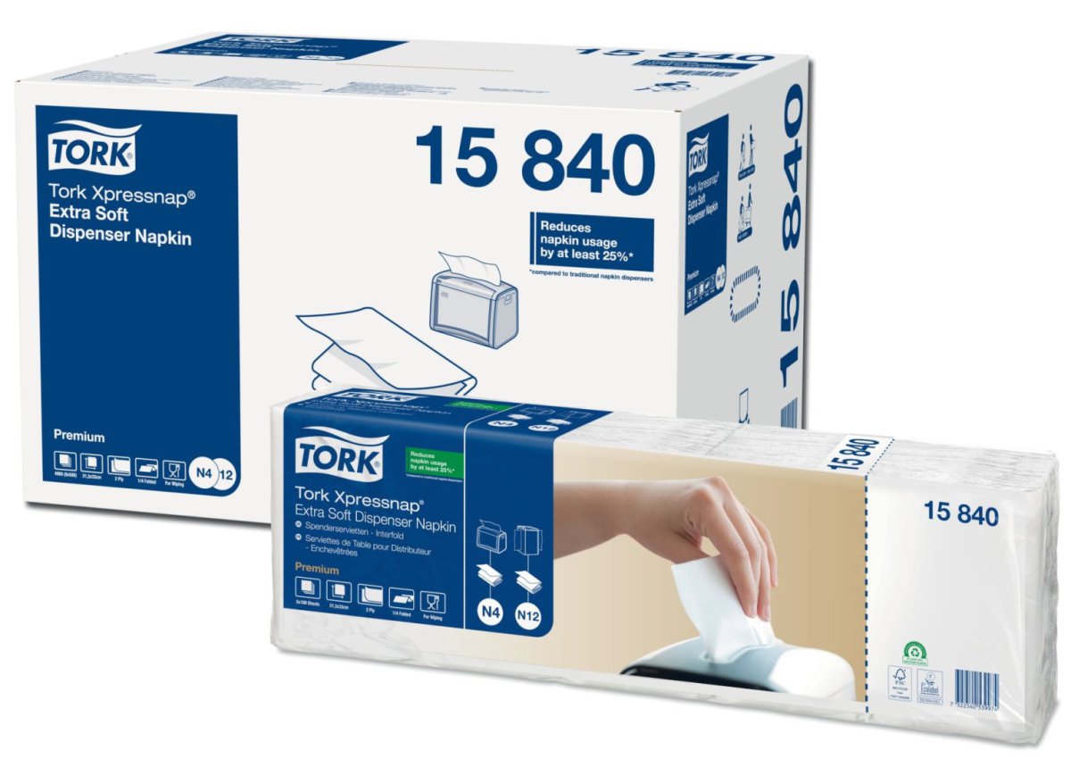 | 1739805 | Ubrousky Tork 15840, do zásobníku Xpressnap, 2vrstvé, bílé, 8 x 500 ks, systém N4 | 323,89 Kč | 391,91 Kč | 1 bal | |||