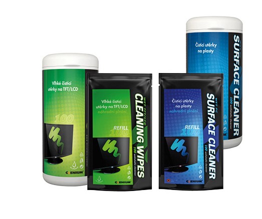 Vlhké čisticí utěrky neobsahují alkohol. Utěrky odstraňují jemně a účinně prach i špínu a zachovávají antistatické účinky. K dosažení vysokého čisticího efektu vyleštěte mikroaktivní utěrkou Clenium.