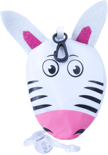 Vak na stažení šňůrkou pro děti v pouzdře ve tvaru zvířátka, s plastovou karabinkou, 190T polyester.