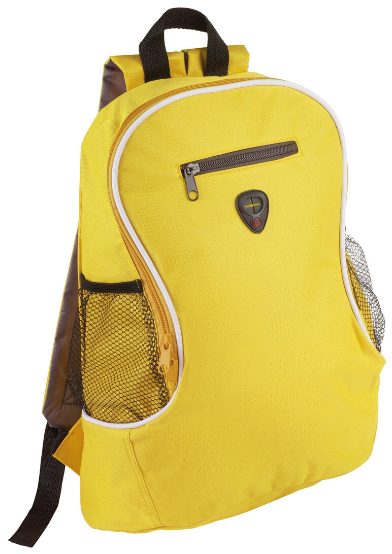 Polyesterový batoh s nastavitelnými ramenními popruhy. Kapsy ze síťoviny, kapsička se zipem na mobil a hlavní přihrádka. 600D polyester.
