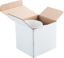 Bílá papírová krabička na hrnek o objemu 300 ml.