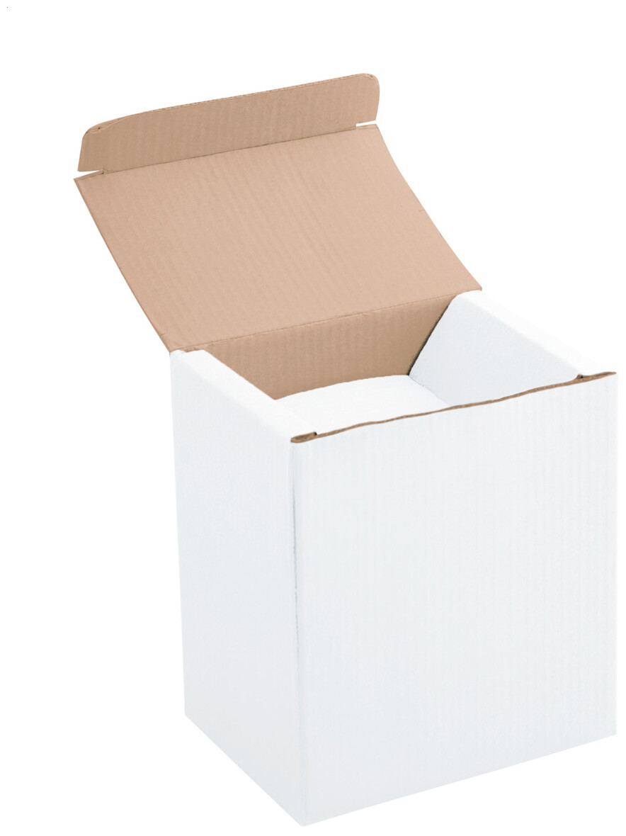 Bílá papírová krabička na hrnek o objemu 300/400 ml.