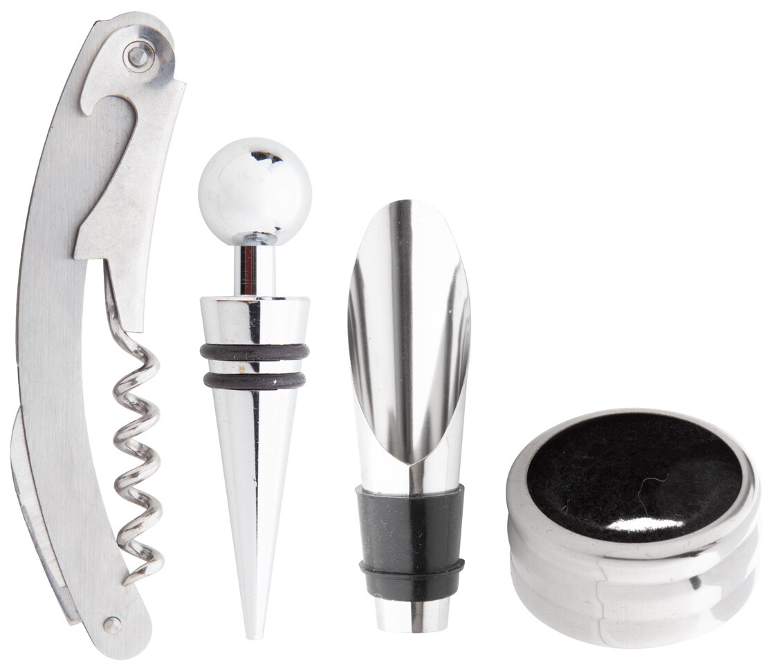 Sada na víno 4 dílná, v černé dárkové krabičce.