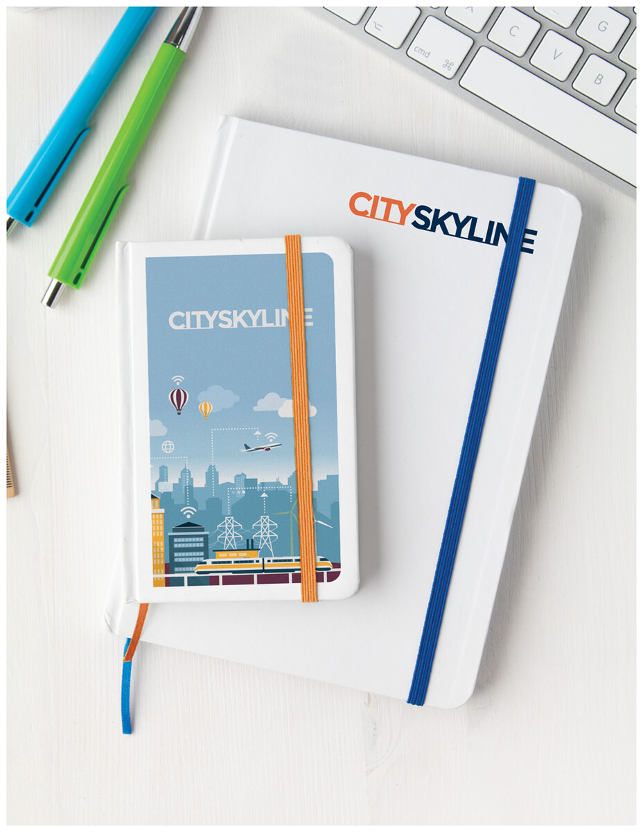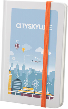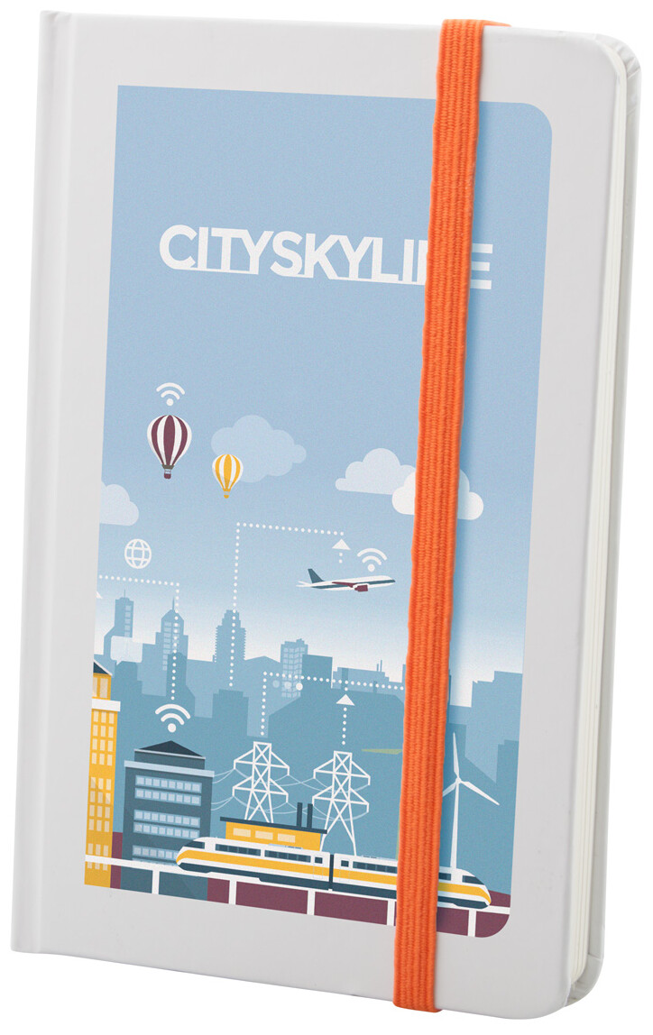 Poznámkový blok s bílými deskami, 80 čistými listy a barevnou gumičkou. Velikost A6.