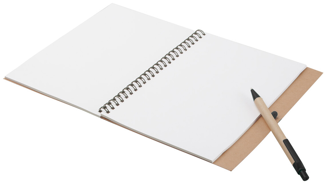 Nelinkovaný blok z recyklovaného papíru, se 60 listy a s papírovým kuličkovým perem.