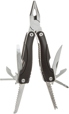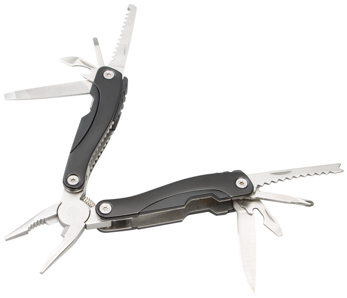 Nerezové multi kleště s hliníkovou rukojetí a 8mi funkcemi. V černé dárkové krabičce.