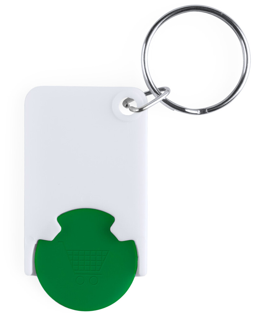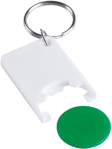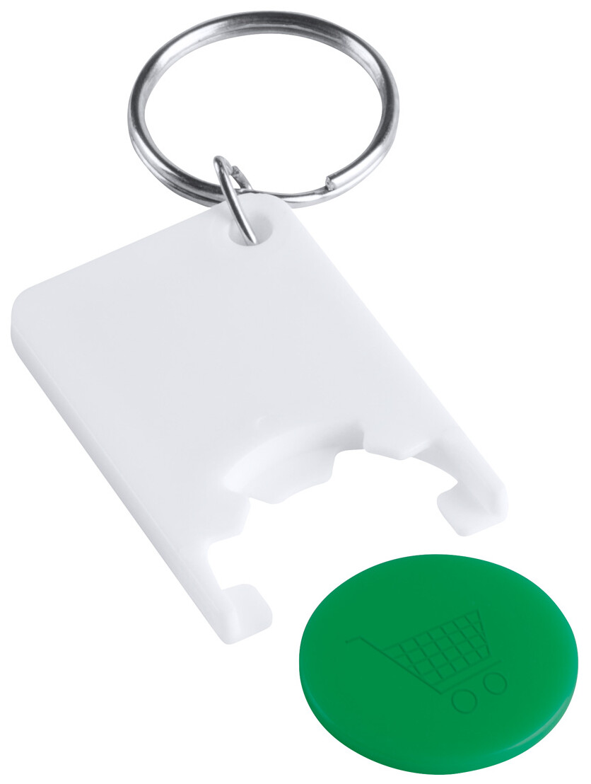 Plastový přívěšek na klíče se žetonem do nákupních vozíků.