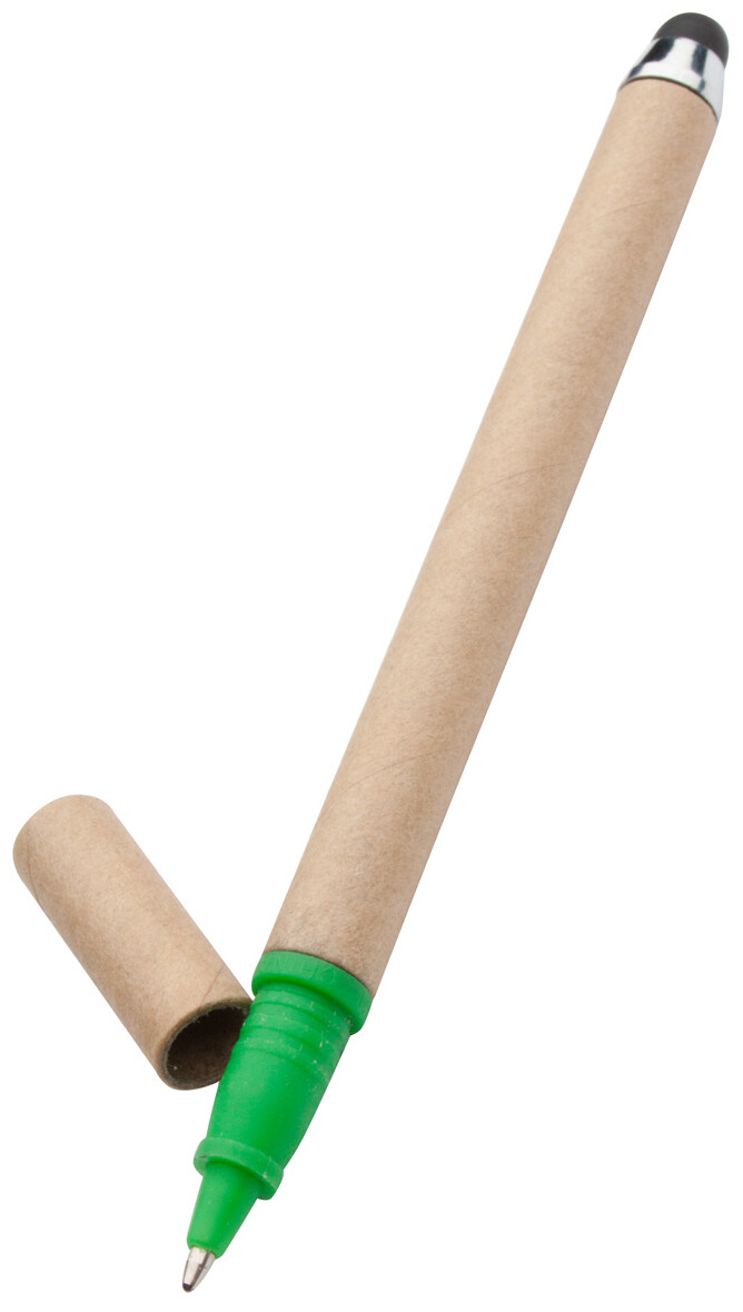 Dotykové kuličkové pero z recyklovaného papíru EcoTouch, zelená, přírodní
