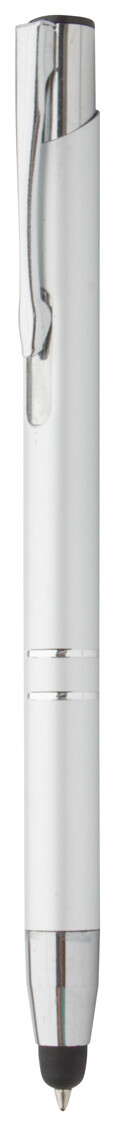 Hliníkové kuličkové pero s dotykovým koncem a modrou náplní.