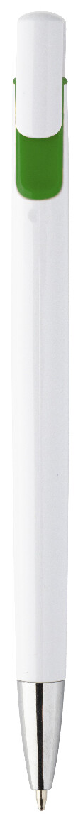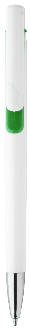 Plastové kuličkové pero s barevnými doplňky a chromovou špičkou. Dodáváno s modrou náplní.