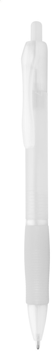 Plastové kuličkové pero s pogumovaným gripem a s modrou náplní.