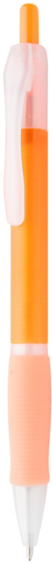 Plastové kuličkové pero s pogumovaným gripem a s modrou náplní.