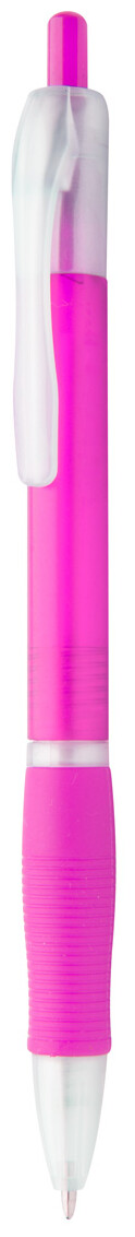 Plastové kuličkové pero s pogumovaným gripem a s modrou náplní.