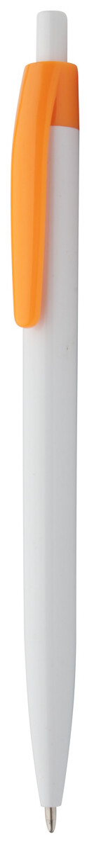 Plastové kuličkové pero s bílým tělem a barevným klipem, s modrou náplní.