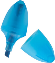 Zvýrazňovač ve tvaru kapsle v průsvitném plastovém obalu.