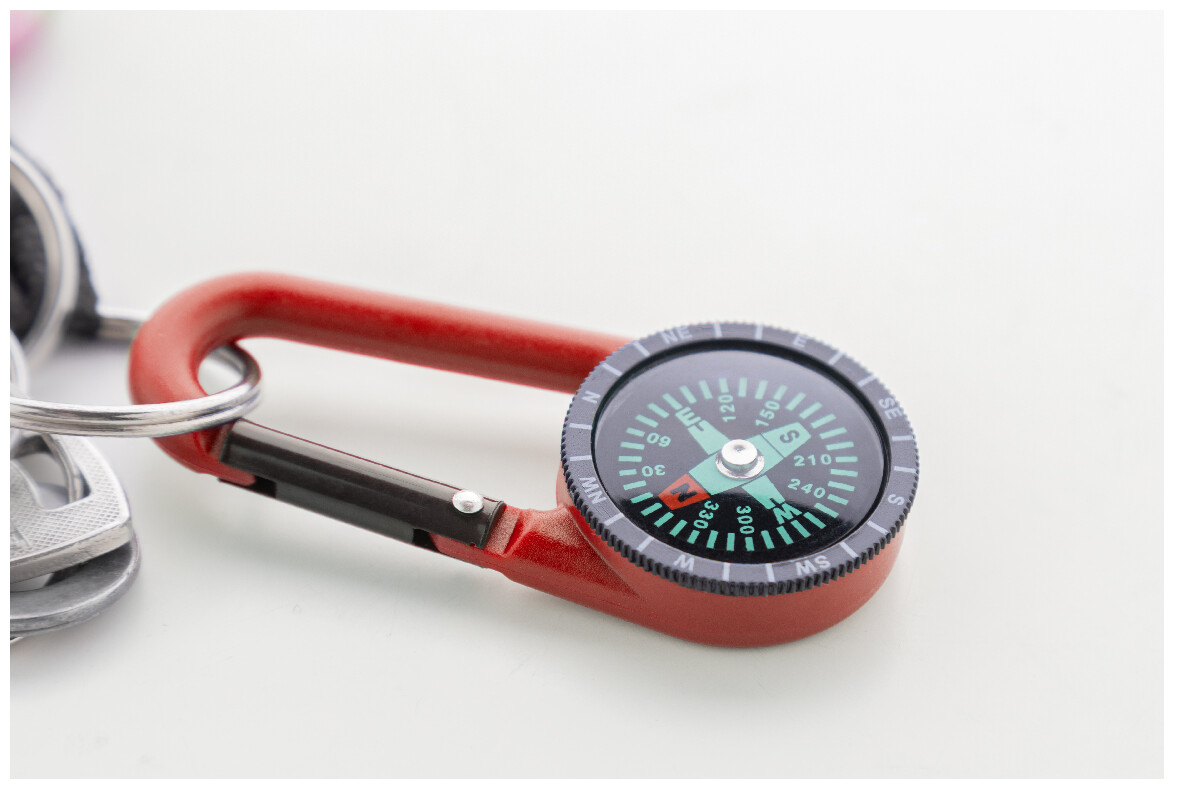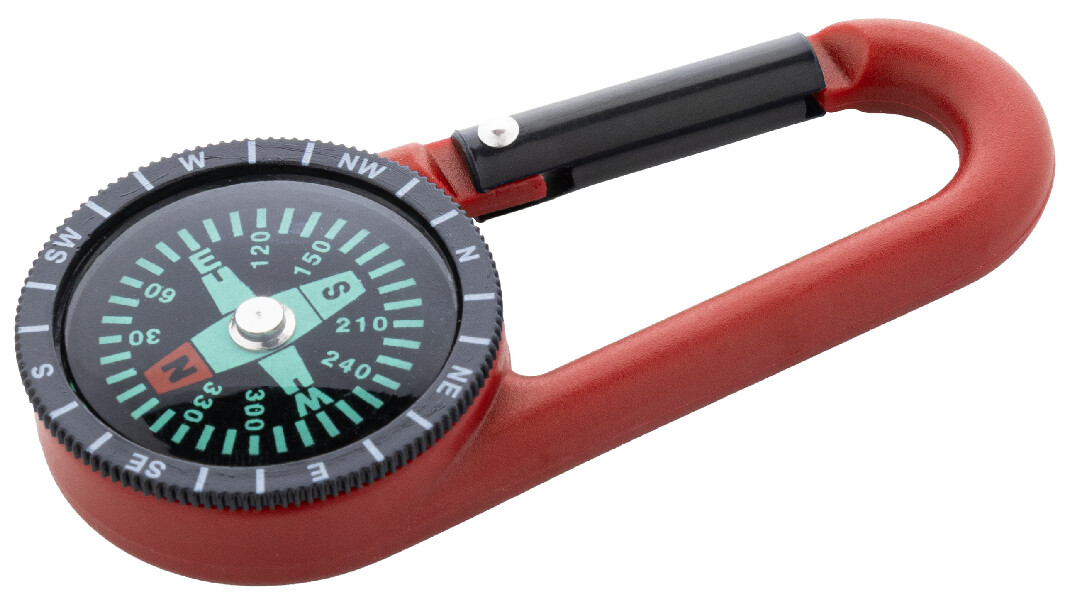 Plastová karabinka s kompasem.