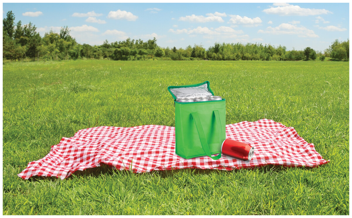 Chladící taška z netkané textilie na zip s hliníkovou vsadkou uvnitř. Pro 6ks plechovek 0,33 l nebo 3ks 0,5 l.