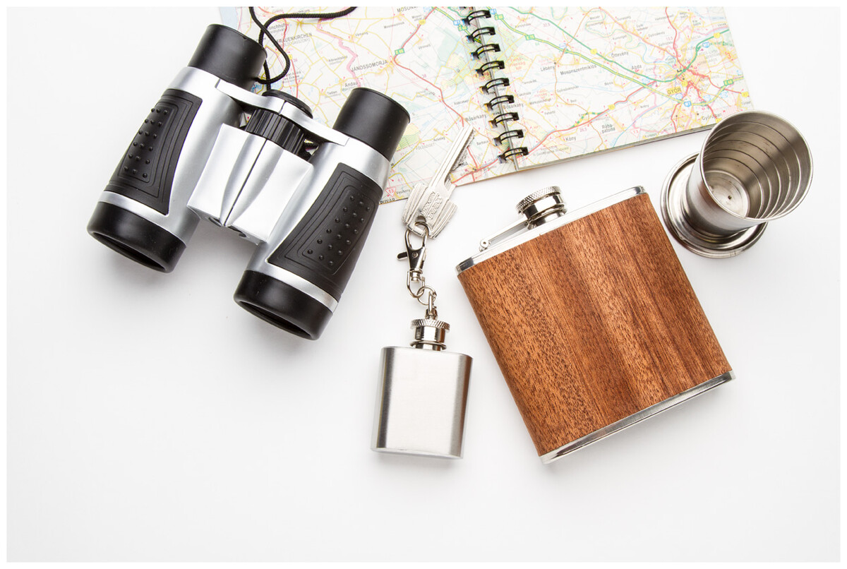 Nerezová butylka s dřevěným povrchem, 170 ml.