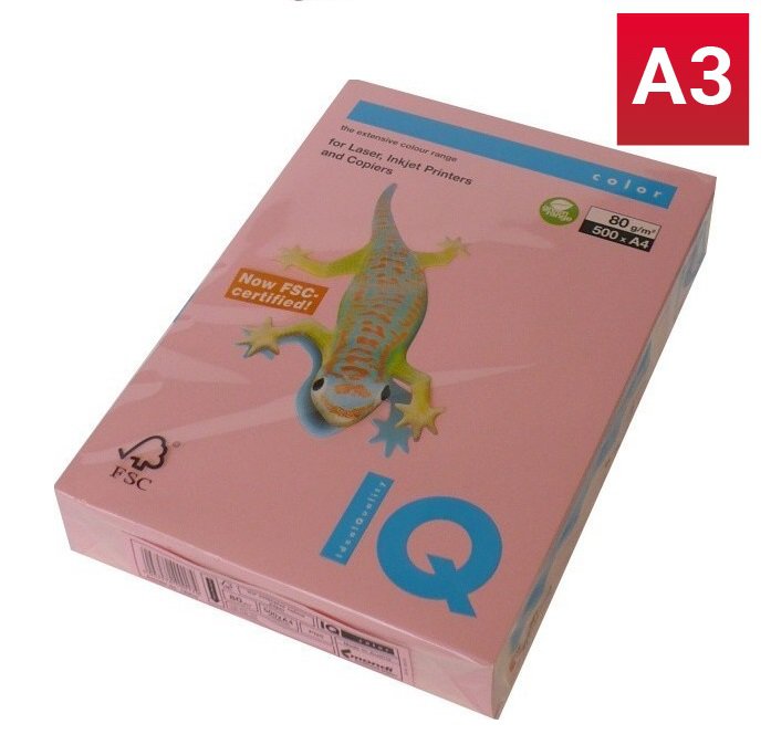 Barevný papír IQ PI25, A3, 80g, pastelová růžová, 1 balení, 500 listů. Papír velkého formátu A3.