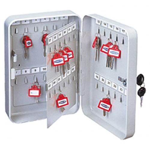 Skříňka na klíče Comsafe TS48 je vyrobena z vysokokvalitního ocelového plechu uzpůsobená pro upevnění na stěně dvěma otvory v zadní stěně skřínky.