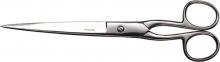 Celokovové nůžky, čepele spojuje kovový šroub, řezné plochy speciálně upraveny pro snadný a precizní střih. Délka nůžek 25 cm, délka čepele 14,5 cm.
