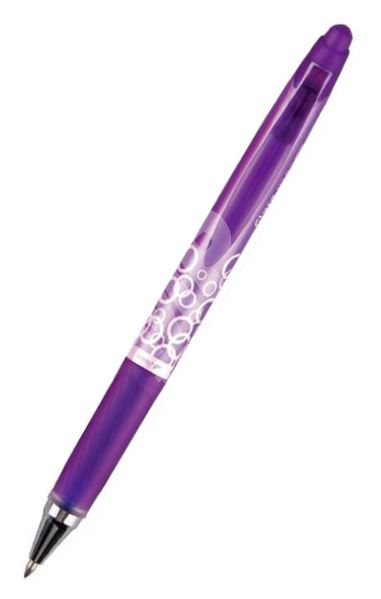 Každé pero má vyměnitelnou náplň o síle hrotu 0,5 mm. Jedinečný gumovatelný modrý inkoust, který lze gumovat pomocí speciální gumy na konci pera. Po gumování lze gumované místo ihned přepsat. Všechna pera mají stiskací mechaniku a plastové tělo. Barva těla: světle fialová.
