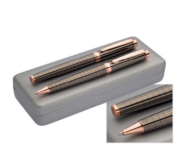 Elegantní dárková sada s propiskou a rollerem v bílé krabičce se značkou GABRIELIS. Tužky mají otočný mechanismus, roller odnímatelné víčko. Povrch tužek lesklý se stříbrným klipem v černém úchytu. Náplň pro kuličkové pero 4441.