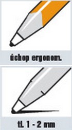 Sada značkovačů na bílé stíratelné tabulky s ergo držením. Zdravotně nezávadný, za sucha stíratelný, světlostálý inkoust na alkoholové bázi. Nutno skladovat ve vodorovné poloze, ventilační chránítko. Šíře stopy 1 - 2 mm.