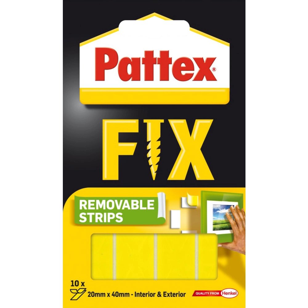 Lepící proužek Pattex Super Fix - 40 x 20 mm jsou oboustranné lepící proužky určené k upevňování předmětů na hladké povrchy, jako jsou dlaždice, kov, dřevo, kámen a plasty. Jeden proužek udrží až 2 kg.
