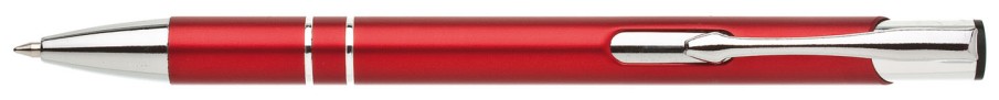 ALBA je velmi oblíbená hliníková reklamní tužka. Matné červené tělo se dvěma stříbrnými proužky a chromovými doplňky.