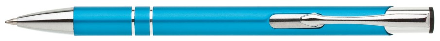 ALBA je velmi oblíbená hliníková reklamní tužka. Matné tyrkysové tělo se dvěma stříbrnými proužky a chromovými doplňky.
