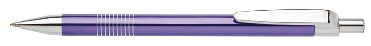 Kuličkové pero LAURIA je vyrobeno z hliníku. Má fialové tělo se stříbrnými doplňky jako jsou špička, klip a cvakátko. Úchopová část má 10 stříbrných proužků po celém obvodu tužky. Náplň- X20, modře píšící.